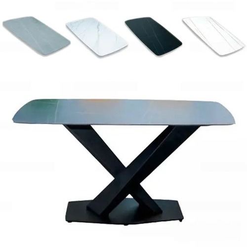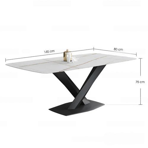 - Chất liệu: Mặt bàn được làm từ mặt đá thiêu kết, chân bàn bằng thép sơn tĩnh điện.