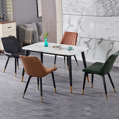 Bàn ăn mặt đá sang trọng nhập khẩu mã T147 được thiết kế từ Đá Cẩm thạch kích thước 80×120 cao 75cm là một trong những mẫu bàn ăn hiện đại cao cấp tại Quế Trâm được rất nhiều khách hàng để mắt tới. Với vẻ đẹp sáng bóng của đá quý, kế hợp thiết kế chắc chắn từ hệ thống chân sắt sơn tĩnh điện, đây sẽ là lựa chọn thổi bùng không gian sống của bạn thêm đẳng cấp, tinh tế.