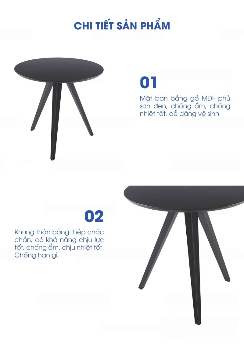 | Mặt bàn | Mặt bàn bằng gỗ MDF phủ sơn đen, chống ẩm, chống nhiệt tốt, dễ dàng vệ sinh.. |