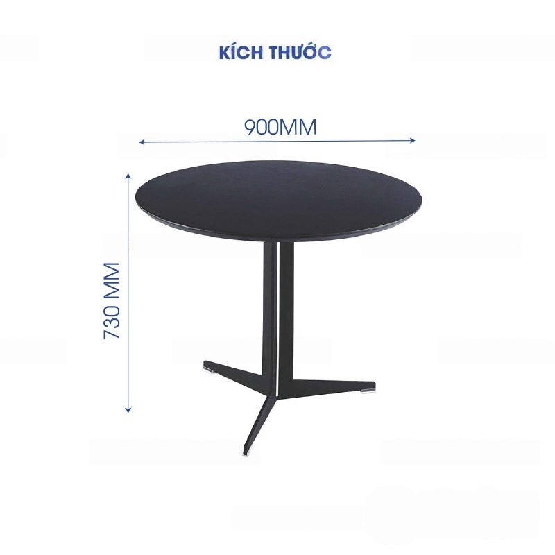 | Thiết kế | Bàn có thiết kế cao cấp, hiện đại, phù hợp với không gian cafe, bar, nhà hàng. Với thiết kế 3 chân đơn giản, tạo thế vững chắc tăng khả năng chịu lực của sản phẩm. |