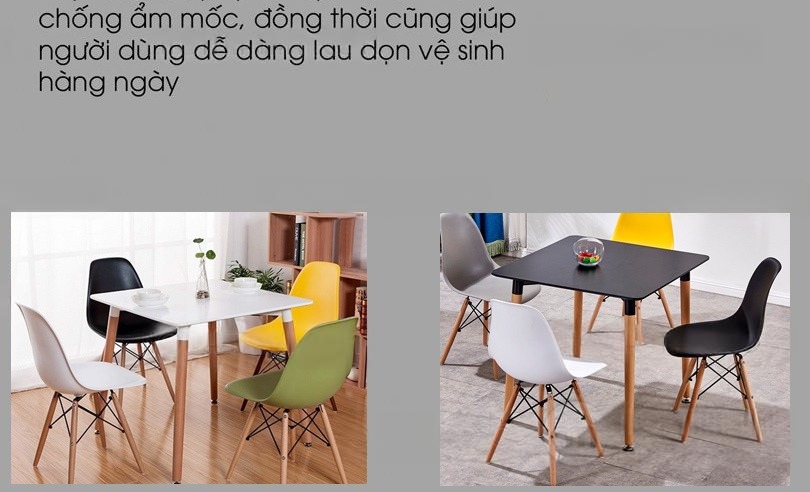 | Kiểu dáng | Bàn có thiết kế tối giản, tinh tế toát lên vẻ sang trọng và hiện đại với mặt bàn hình vuông đầy cá tính, bốn chân bàn thanh mảnh tạo thành sự cân bằng cho sản phẩm. | |||