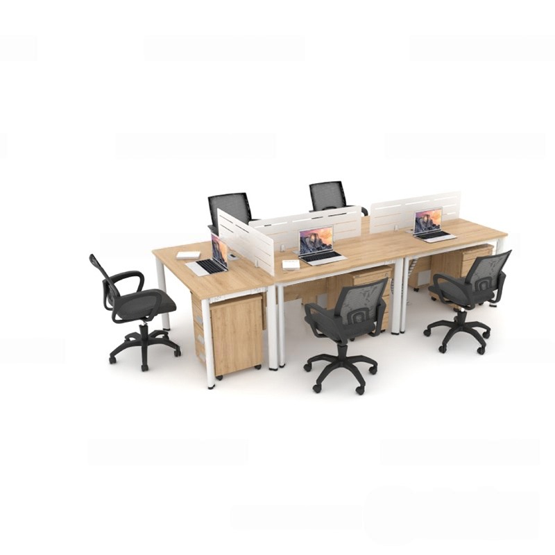 Mặt bàn được tạo thành từ gỗ công nghiệp đã qua tẩm sấy an toàn có độ bền cao. Mặt bàn phủ một lớp Melamine sáng bóng chống mối mọt.