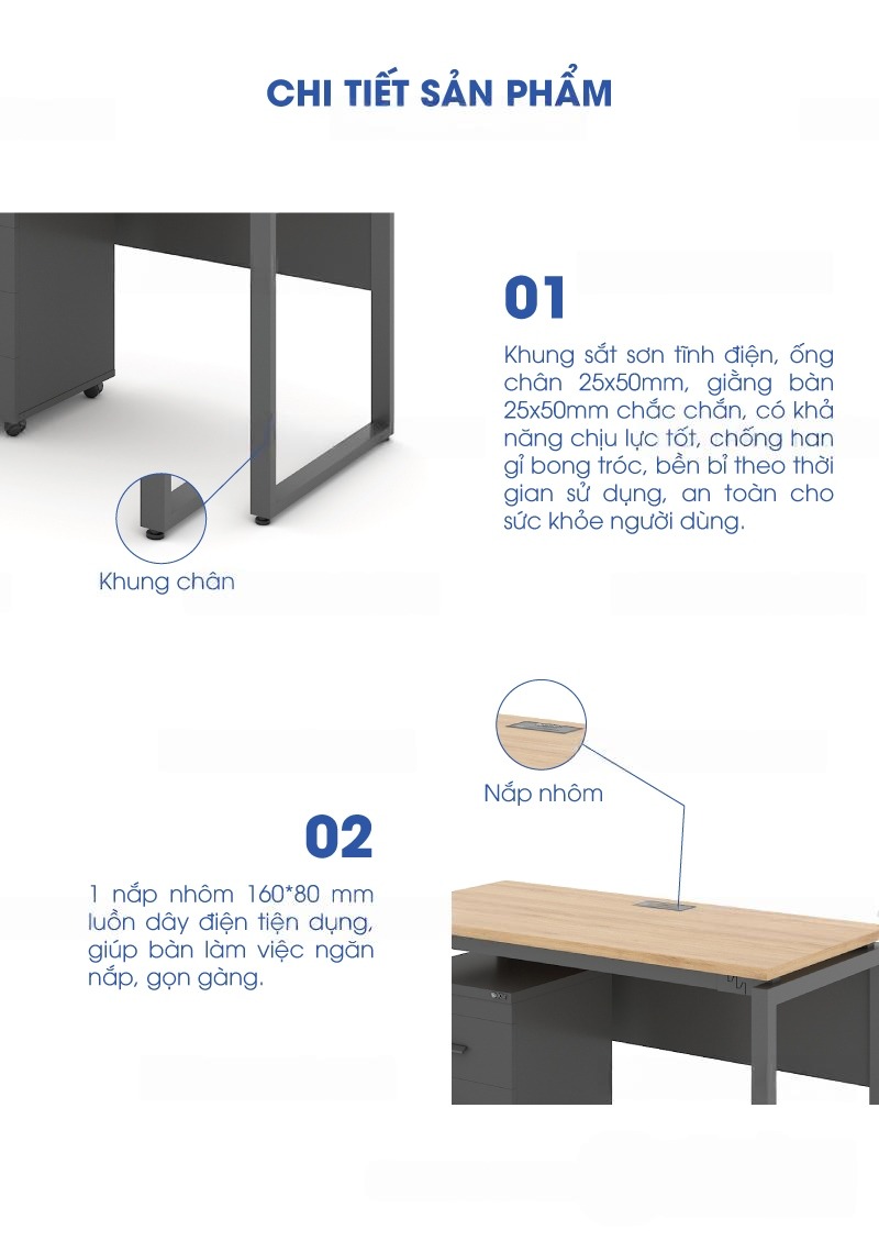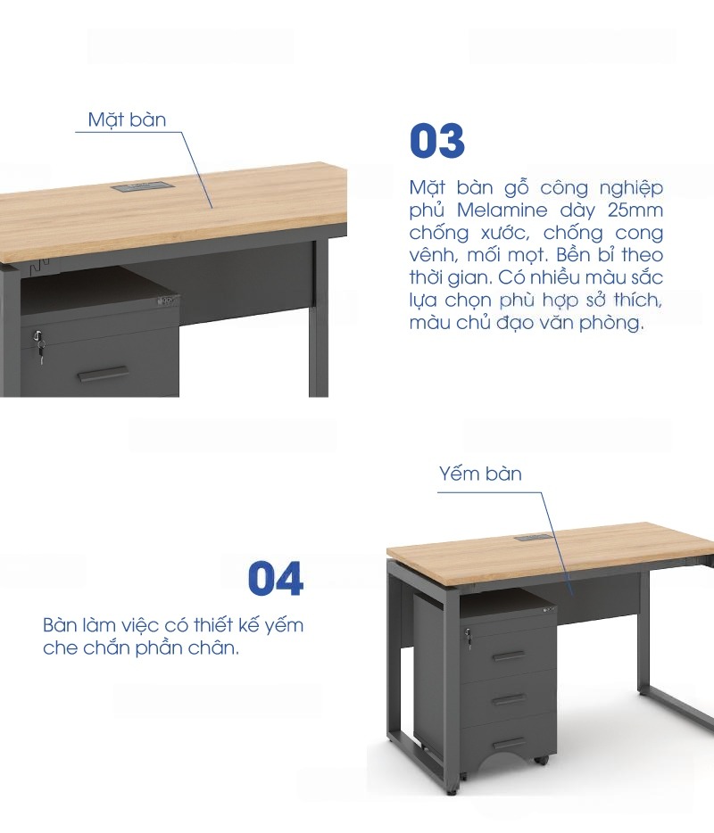 Bàn Chân Vuông Chữ U Eos 1m2 EU12G-Y