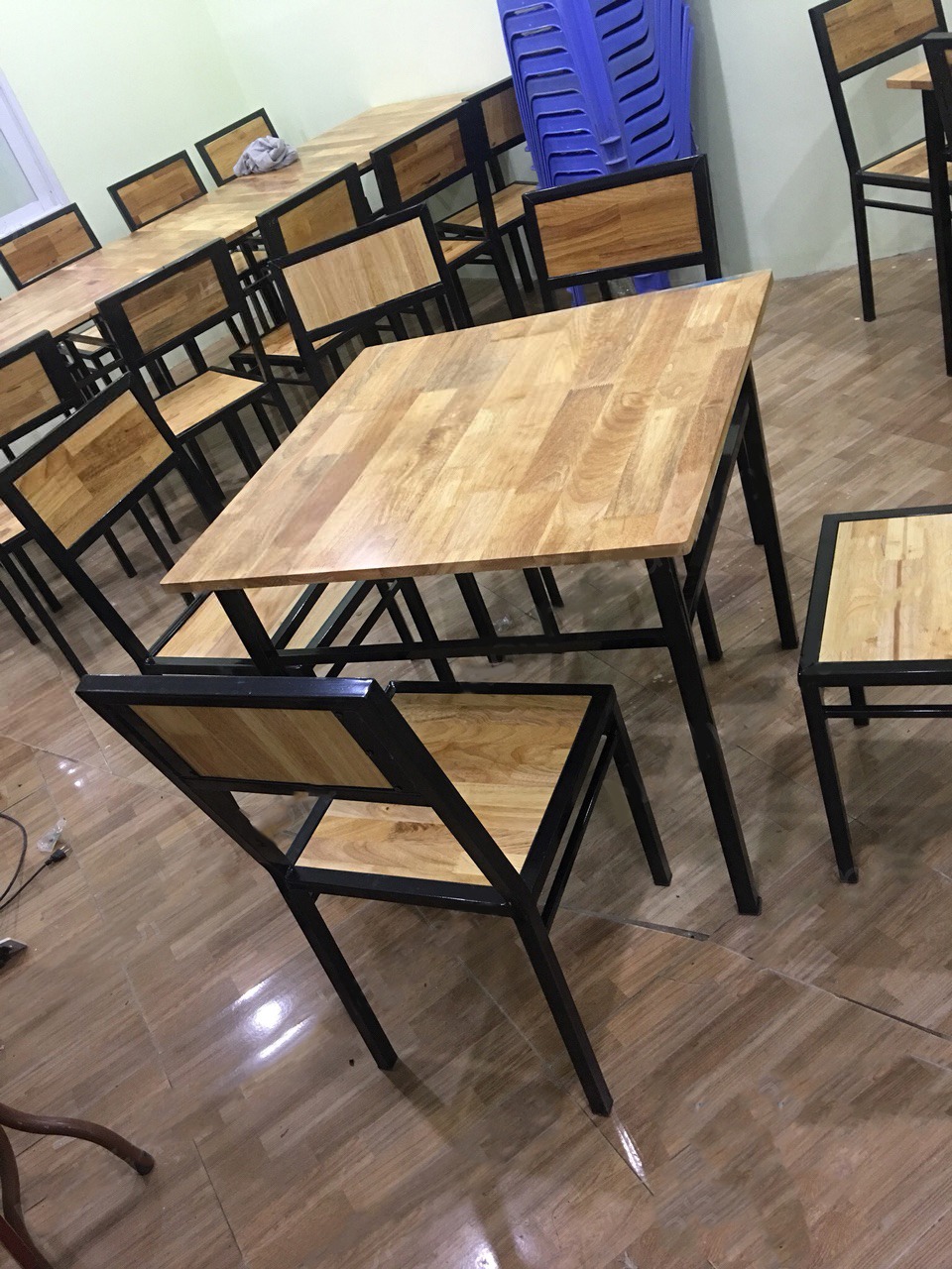 Bàn ghế cafe gỗ giá rẻ khung sắt mặt cao su