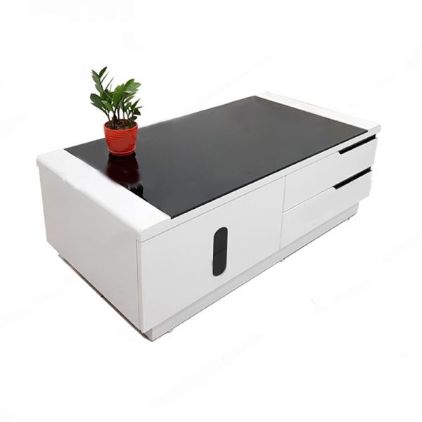 - Chất liệu bàn kính hình chữ nhật 3 ngăn là gỗ công nghiệp, mặt kính
