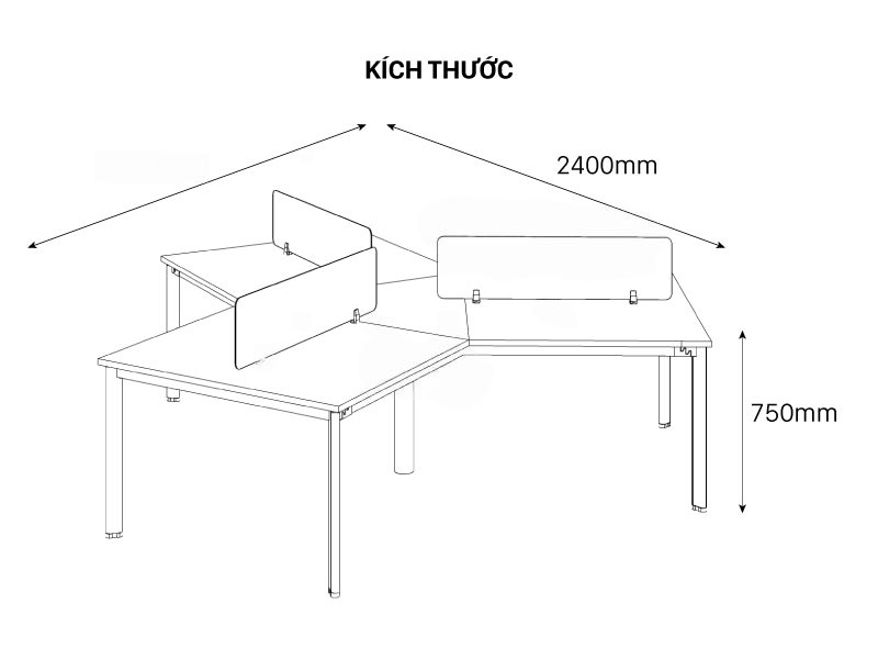 - Bàn được thiết kế với vách ngăn lửng trên mặt bàn nhằm phân chia không gian thành từng ô riêng biệt để người ngồi có không gian riêng, làm việc tập trung hiệu quả hơn.