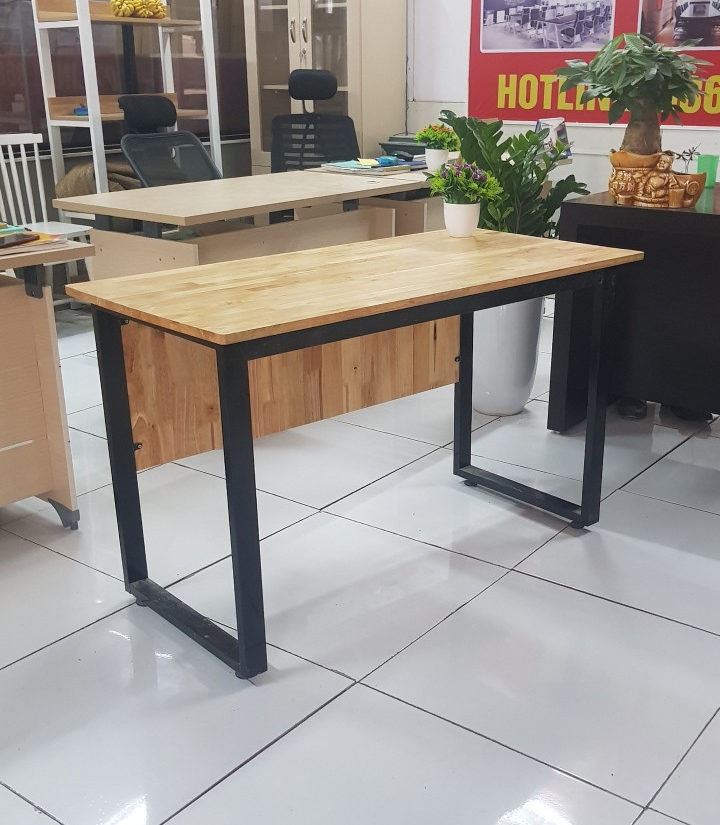Mặt bàn chân sắt chữ U mặt gỗ cao su tự nhiên với độ dày 18mm. Bàn chân sắt chữ U mặt gỗ cao su được thiết kế với kết cấu khung làm bằng thép hộp dày 1.2mm hàn với nhau kết hợp mặt bàn bằng gỗ cao su với màu sắc tươi tắn tạo không gian làm việc sang trọng lịch sự.