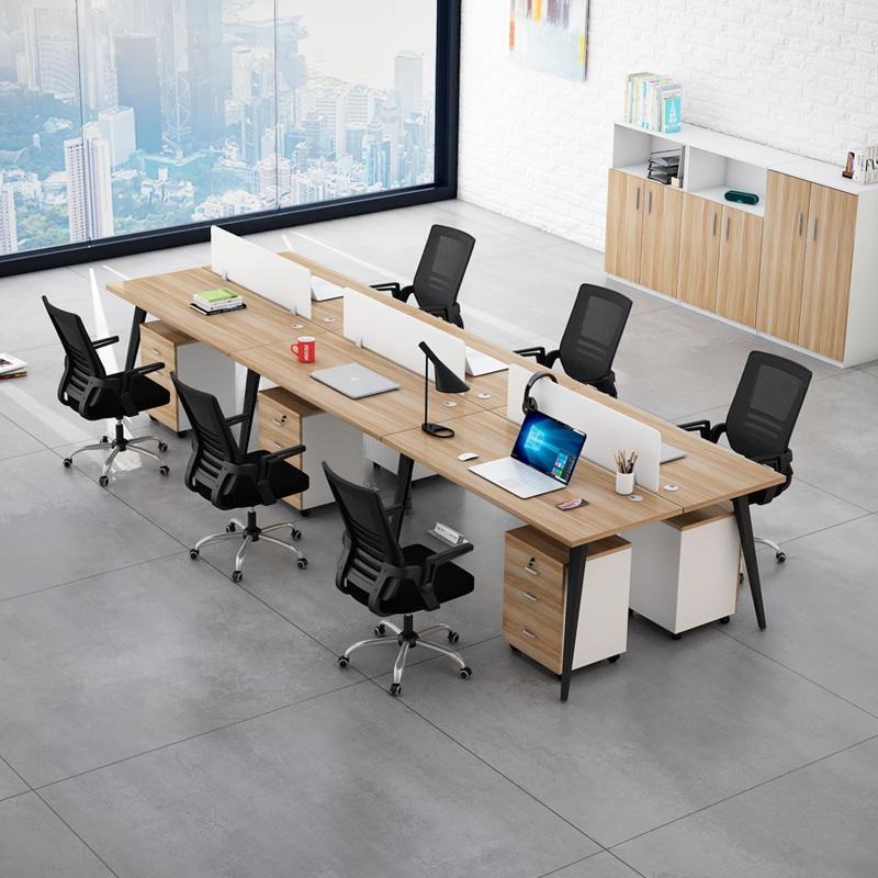 Bàn làm việc văn phòng nhóm 6 người với chân thép sơn tĩnh điện, lắp ráp ngàm chắc chắn, kết hợp với mặt bàn được làm từ gỗ tiêu chuẩn. Bàn có thiết kế cổ điển với kích thước tiêu chuẩn phù hợp với mọi loại ghế văn phòng, phù hợp với nhiều không gian văn phòng. Cụm bàn làm việc nhóm 6 người chân côn là một trong những sự lựa chọn khi mua bàn làm việc nhiều người được thiết kế với kiểu dáng đơn giản, chân chữ chân côn chắc chắn cùng ưu điểm gọn nhẹ, tiết kiệm diện tích, dễ dàng lắp đặt đang là sự lựa chọn hàng đầu của các doanh nghiệp, công ty khi lựa chọn nội thất văn phòng.