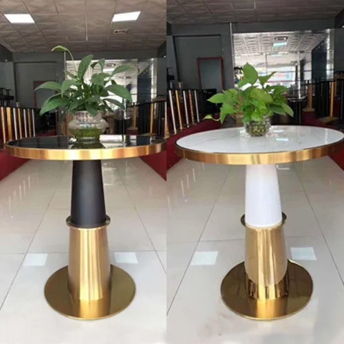 Bàn Tròn Mặt Đá Chân Inox Mạ Vàng- Mã: T176