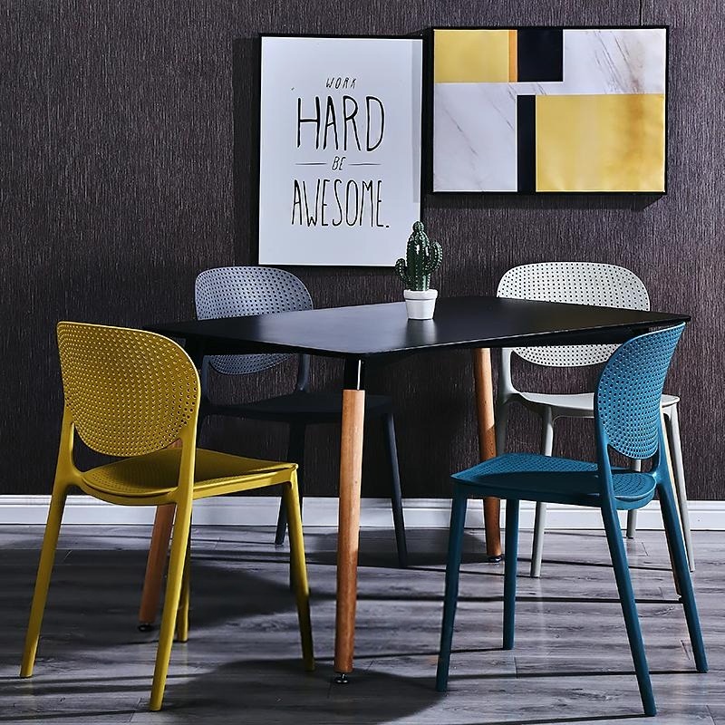 - Màu sắc: Bàn: Trắng, đen; Ghế: Trắng, đen, đỏ, vàng, xám, xanh lá, xanh dương.