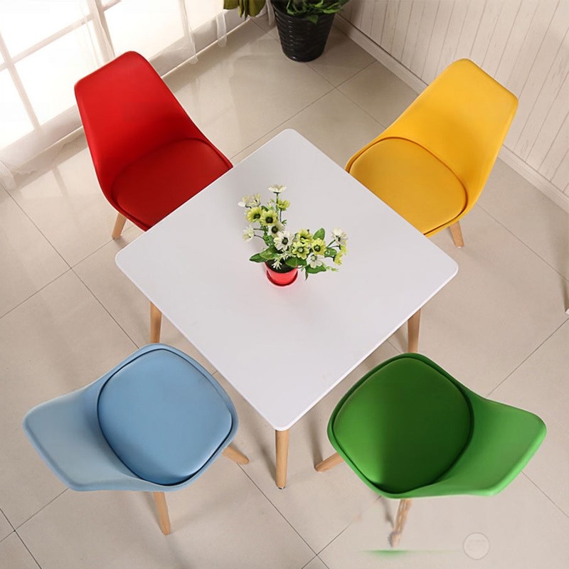 - Màu sắc: Bàn: Trắng, đen, nâu, kem; Ghế: Trắng, đen, đỏ, xám, vàng, cam, xanh dương, xanh lá, hồng.