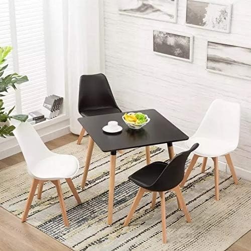 - Chất liệu: Bàn: Mặt gỗ MDF sơn phủ composite, chân gỗ beech; Ghế: nhựa PP lót nệm chân gỗ beech