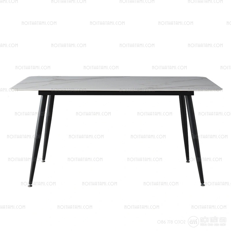 - Vật liệu: Ghế: Bọc da PU chân thép sơn tĩnh điện; Bàn: Măt đá ceramic, chân thép sơn tĩnh điện.