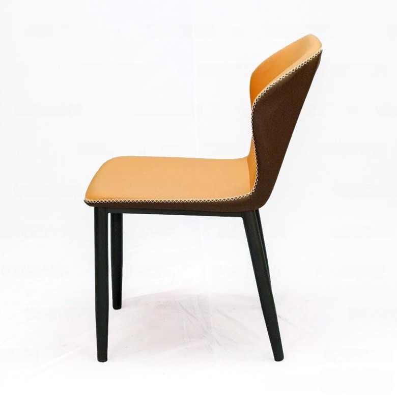 Ghế được bọc nệm da và chân thép sơn tĩnh điện tạo cảm giác thoải mái, êm ái khi ngồi. Đặc biệt chiếc ghế được thiết kế hai tông màu kết hợp giúp tạo sự nổi bật và là điểm nhấn của bộ bàn ghế.