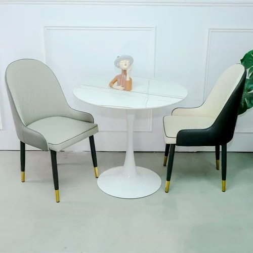 - Vật liệu: Mặt bàn đá, chân thép sơn tĩnh điện; Ghế bọc nệm da cao cấp.