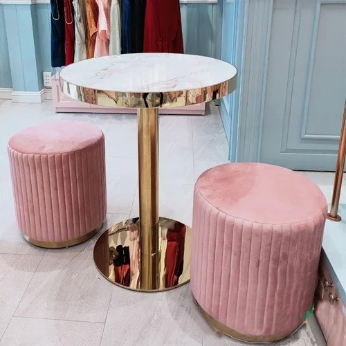 Bộ bàn tư vấn ở cửa hàng thời trang còn đi kèm với bộ 4 ghế được bọc vải nhung đã mang đến sự tinh tế, hiện đại cho showroom thời trang, mỹ phẩm..của bạn. Đây quả thực là một sản phẩm mà bạn không nên bỏ qua khi trang trí cửa hàng của mình.
