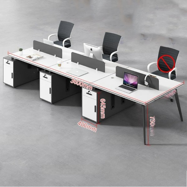 Cụm bàn 6người chân đa giác có hộc là một lựa chọn tuyệt vời cho không gian làm việc chia sẻ. Thiết kế đa giác và hộc tích hợp mang lại sự hiện đại và tiện ích. Bàn rộng rãi và mặt bàn phẳng mượt, trong khi hộc cung cấp không gian lưu trữ tiện dụng. Sản phẩm này kết hợp giữa tính chuyên nghiệp và thẩm mỹ, tạo nên không gian làm việc thoải mái và hiệu quả.