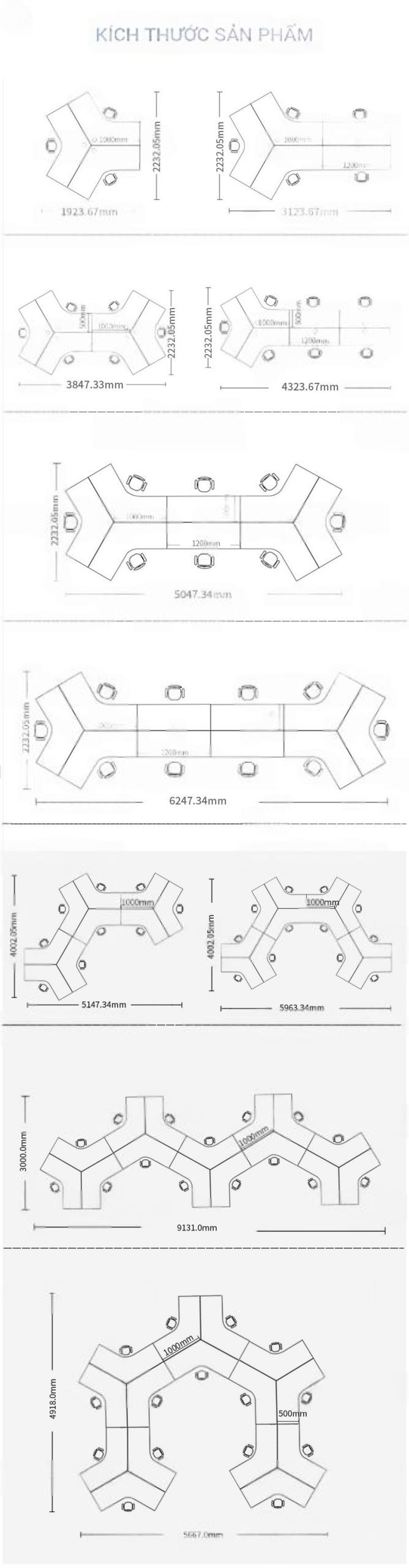 W5147 x D4002 x H750 mm. (Chiều rộng cạnh bàn 1000 mm). |