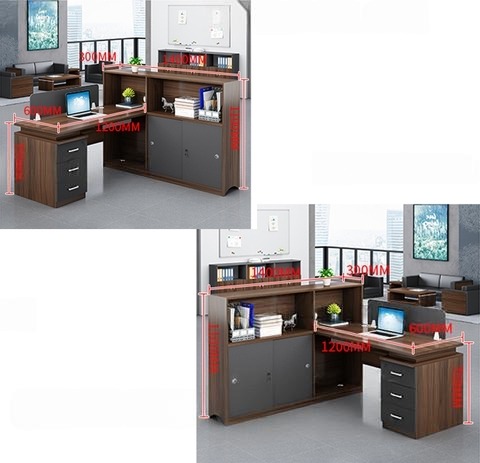 Tủ phụ :rộng1m4x sâu 30cmx Cao 1m1 Mặt bàn : dài 1m2 x rộng 60 x cao 75cm |