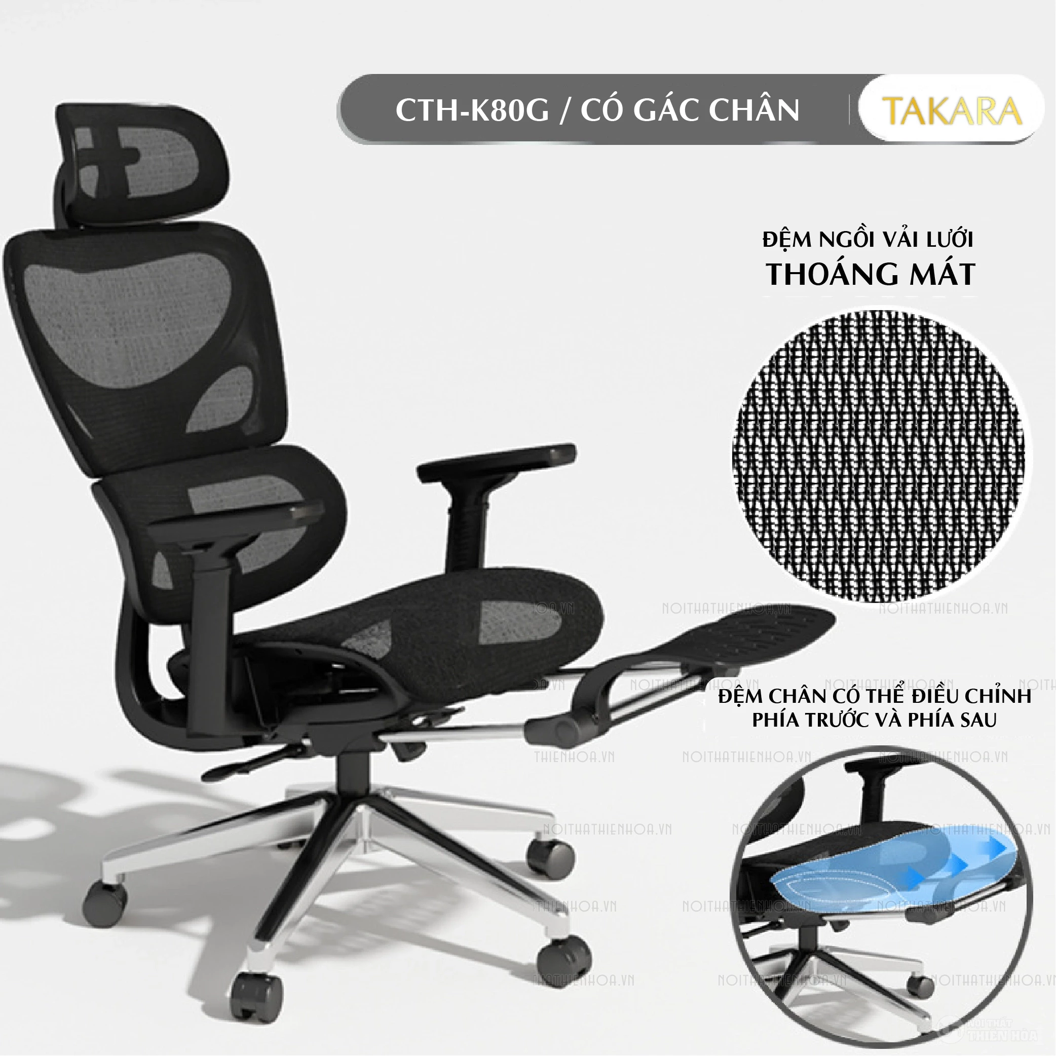 Ghế công thái học Ergonomic CTH-05 được nhập khẩu và phân phối bởi Nội thất Thiên Hòa