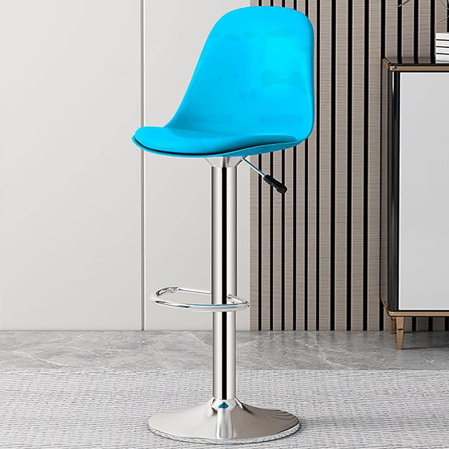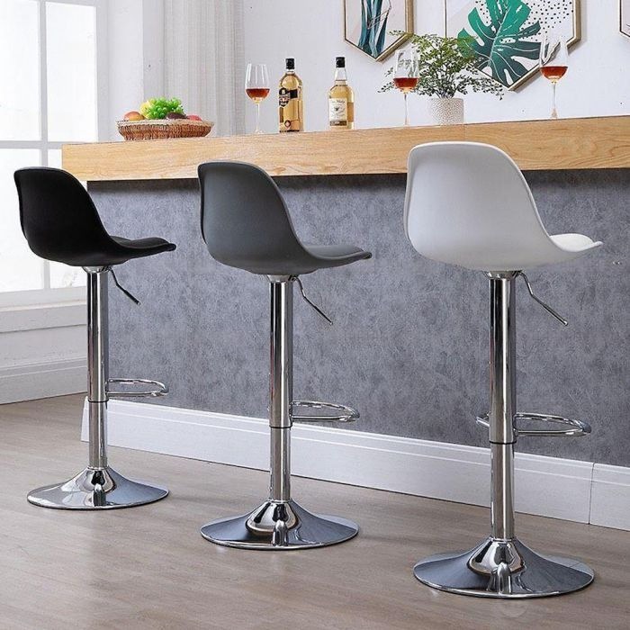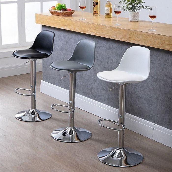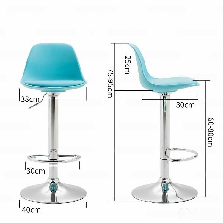 - Chất liệu: Lưng nhựa PP lót nệm bọc simili, chân thép mạ crom xoay tròn 360 độ, tăng giảm chiều cao.