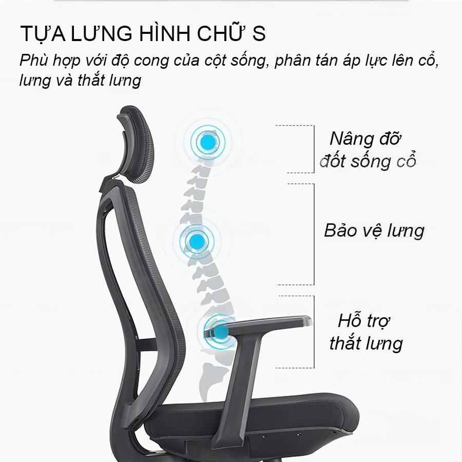Thông tin chi tiết sản phẩm Ghế xoay tự đầu ngả lưng cao cấp: