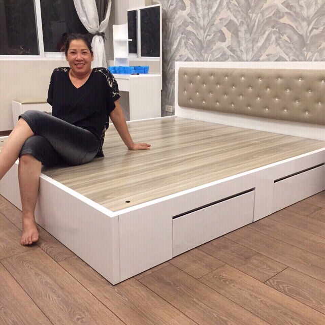 Giường bọc đệm 1m6 có ngăn kéo