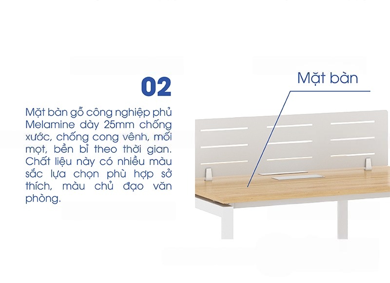 Module bàn 2 người 1m2 Eos EU1212 thiết kế hiện đại với khung chân thép ống sơn tĩnh điện, mặt bàn gỗ công nghiệp phủ Melamine có độ bền cao. Đây là một trong những sản phẩm văn phòng được doanh nghiệp lựa chọn nhiều nhất hiện nay.