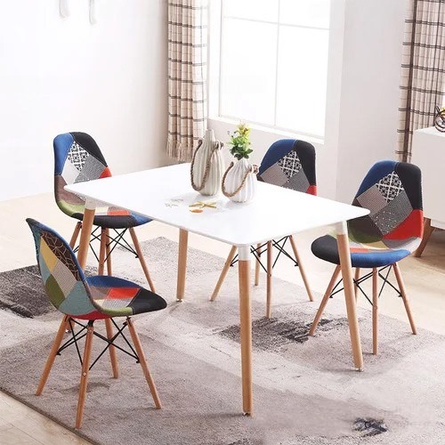 - Mỗi bộ gồm 01 bàn chữ nhật và 04 ghế vải thổ cẩm tươi mới giúp không gian bài trí thêm sang trọng, tăng tính hiện đại.