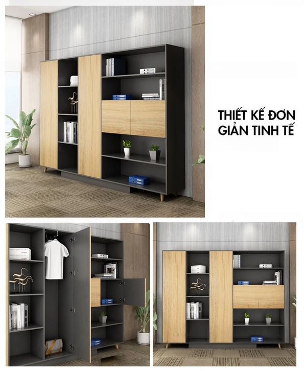 + Bố cục tủ hợp lý: Các ngăn tủ có cánh và không có cánh được sắp xếp hài hòa và hợp lý. Sản phẩm cũng nhờ đó mà mang đến hiệu quả sử dụng tối ưu và chất lượng cho người dùng. Tủ có được thiết kế hiện đại, thanh lịch và mang tính ứng dụng cao. Có thể để đồ đạc tùy ý vào các ngăn tủ có cánh. Ngược lại, những ngăn tủ không có cánh có thể đặt để tài liệu, hoặc sử dụng như những ngăn để trưng bày các món đồ lưu niệm. Nhờ đó, mà mẫu tủ hồ sơ gỗ này mang đến cho không gian tính thẩm mỹ và sự đẹp mắt tối ưu nhất.