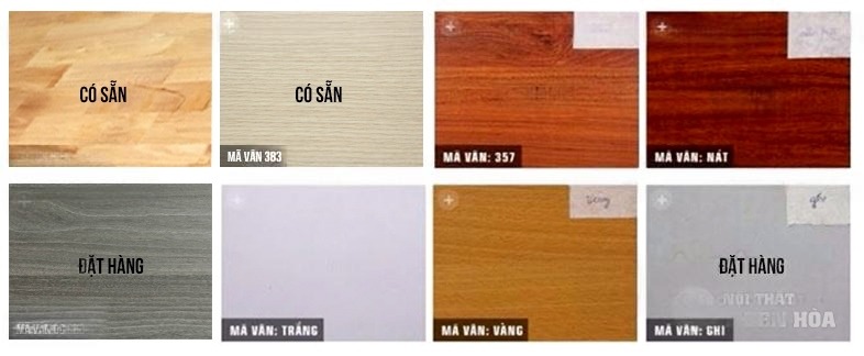 - Màu vàng vân sồi, màu nâu, …hoặc theo bảng màu