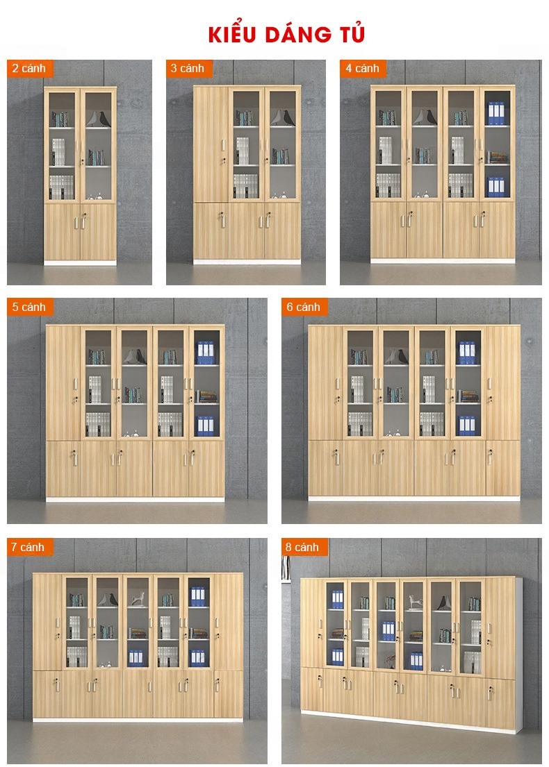 Tủ Hồ Sơ Tài Liệu Văn Phòng 2 Cánh Kính 1 Gỗ