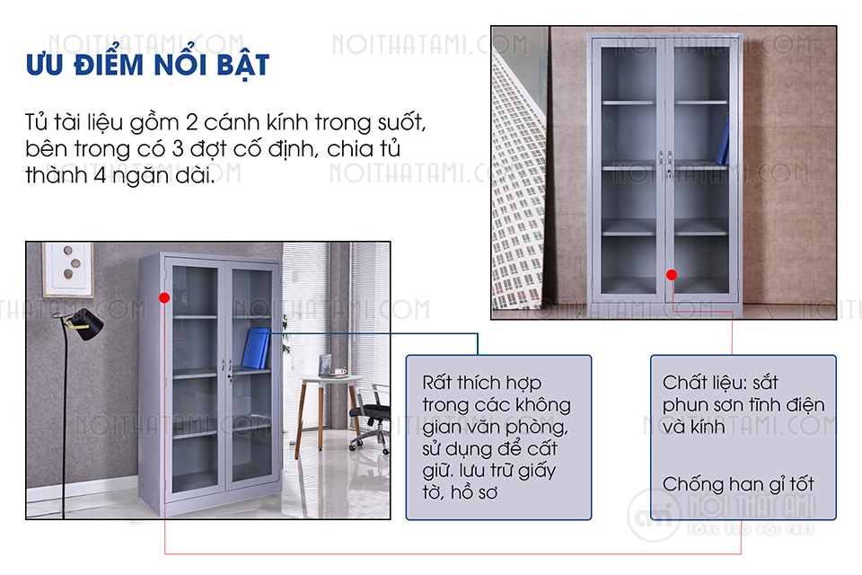 Thông tin chi tiết Tủ sắt 2 cánh kính TVP-S2K: