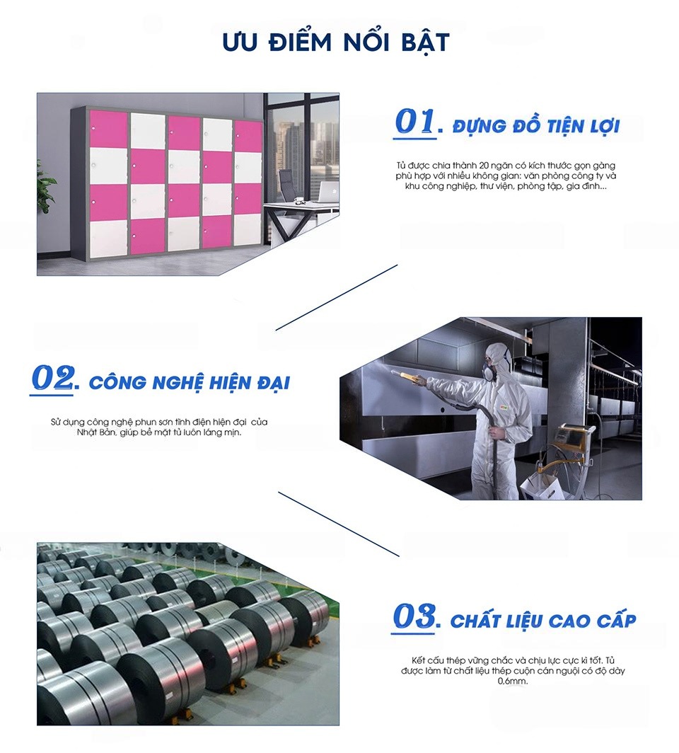 • Chất liệu: Thép cuộn cán nguội, sơn tĩnh điện toàn phần