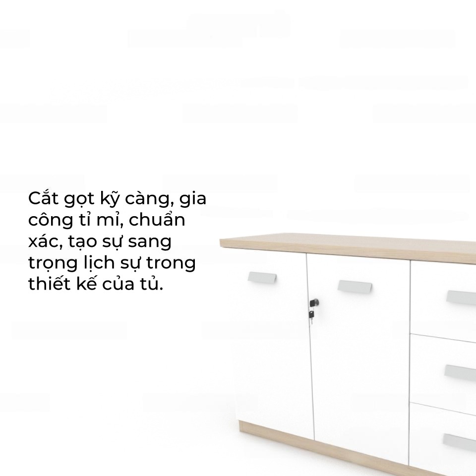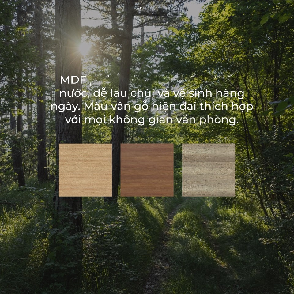 | Chất liệu | MDF phủ melamine chống thấm nước, dễ lau chùi và vệ sinh hàng ngày. Màu vân gỗ hiện đại thích hợp với mọi không gian văn phòng. | |||