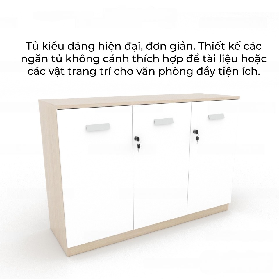 | Kiểu dáng | Tủ kiểu dáng hiện đại, đơn giản. Thiết kế gồm 3 ô cánh cửa đóng kín có tay cầm, cất giữ tài liệu, đồ dùng cá nhân gọn gàng, khoa học hơn. | |||