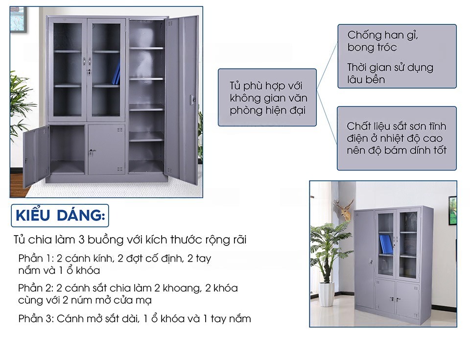 Thông tin chi tiết Tủ tài liệu sắt 2 cánh kính, 1 cánh sắt: